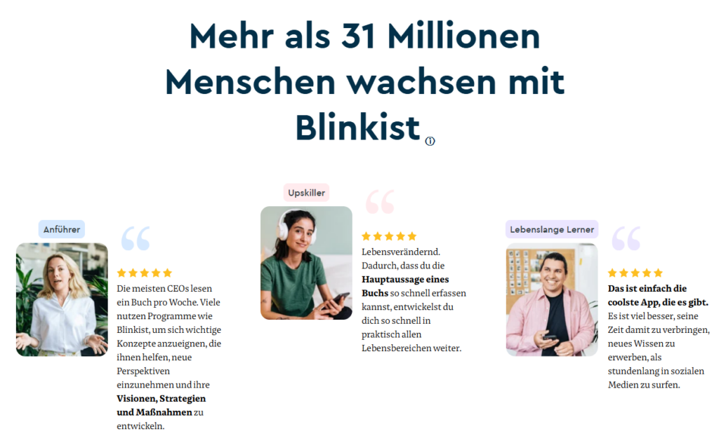 Bring mehr Wissen in deinen Alltag - persönliche und berufliche Weiterentwicklung mega easy. Hol dir das beste Wissen aus Büchern, Podcasts, und von Experten – in 15 Minuten mit der Blinkist App.